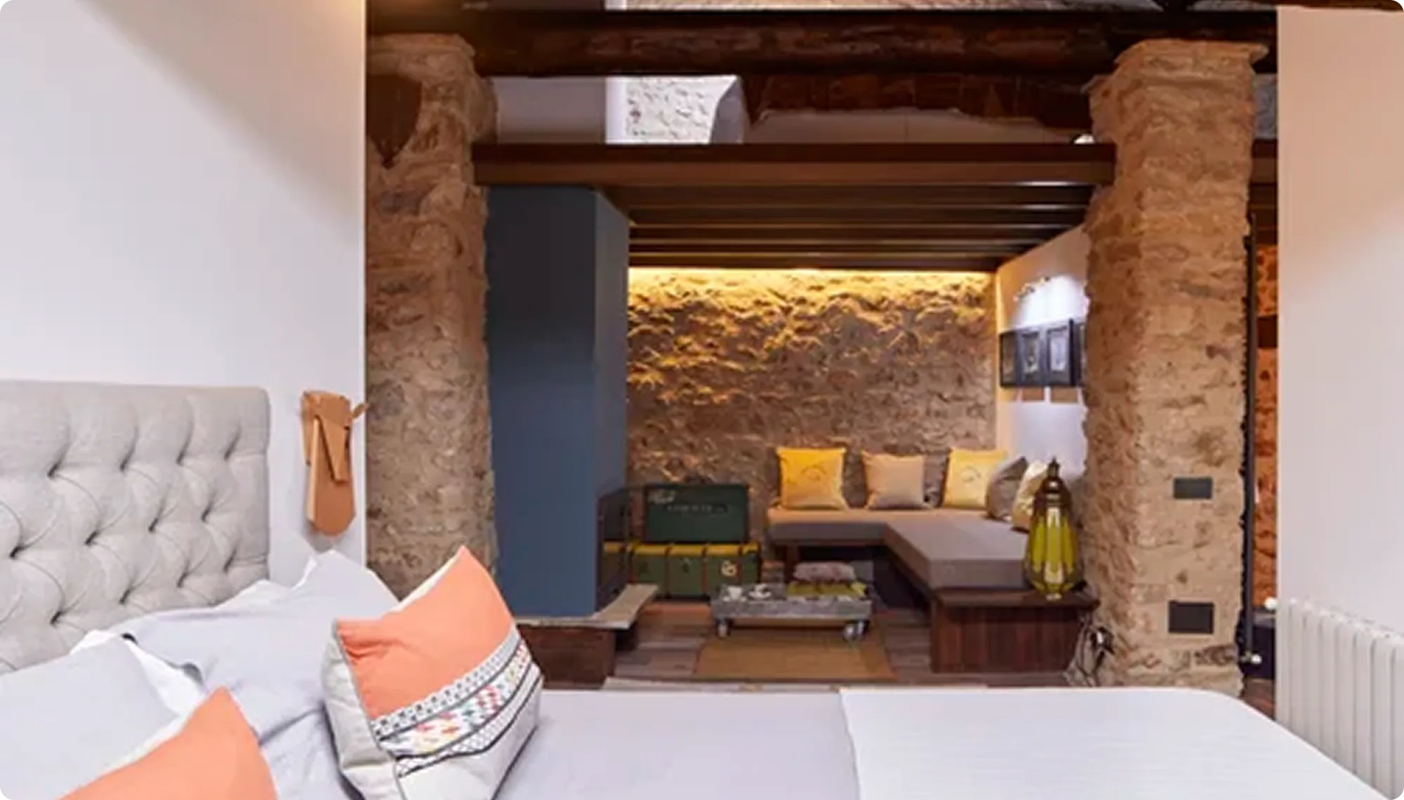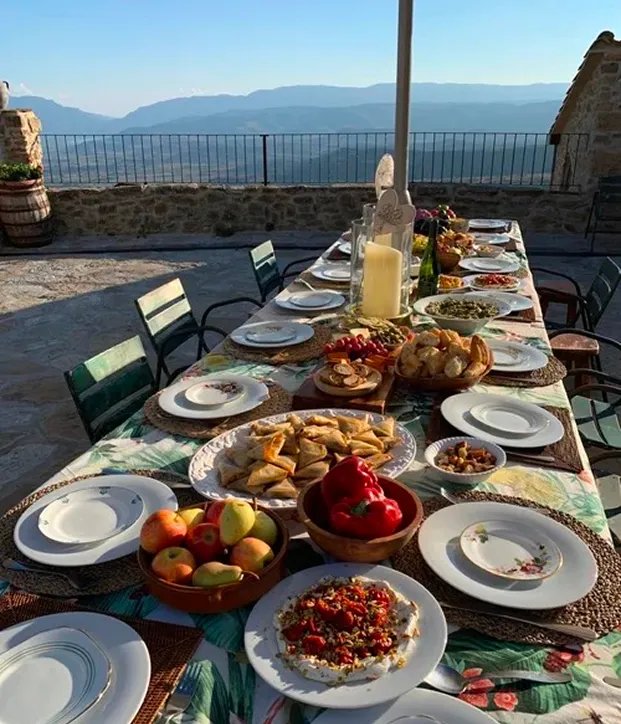 Join us at Casa Guilla, a beautifully restored medieval stone house perched dramatically on a cliff overlooking the Tremp Valley in the Catalan Pyrenees. Set in the tiny village of Santa Engracia with a population of less than 50 people, approximately 2 hours from Barcelona, this intimate venue perfectly embodies the rural renaissance narrative at the heart of our research.