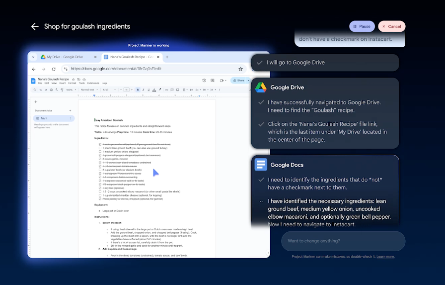 Google has approached agentic AI from two distinct directions. The first is Project Mariner, a Chrome extension powered by Gemini 2.0 that navigates websites autonomously, filling forms, completing multi-step tasks and extracting information across tabs. It operates through an “observe-plan-act” loop, interpreting on-screen content to determine its next move. For teams whose workflows rely heavily on web-based research, this represents a significant shift towards agents being able to operate directly within the browser instead of being restricted to specific files or systems.