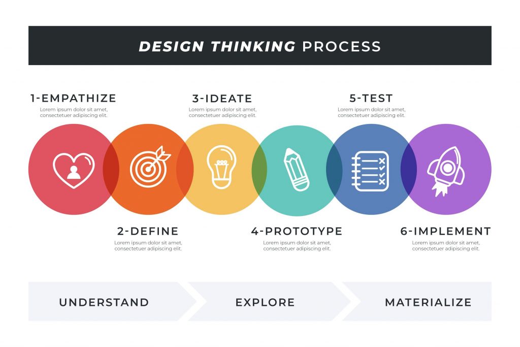 Design thinking is a creative and innovative approach to problem-solving. It is a human-centric method for finding solutions. It also revolves around the idea of building a comprehensive understanding of whom we design products and experiences for: consumers and end-users are in front and centre in design thinking processes. Therefore, empathising with the consumer is a critical dimension of design thinking. It allows imaging processes, experiences and products from their perspectives.